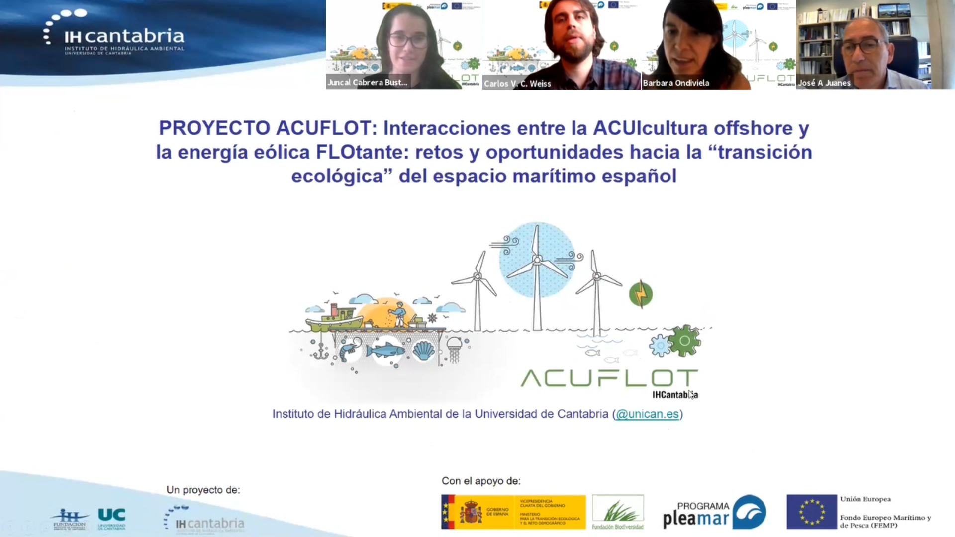 Hemos celebrado el primer Taller del proyecto ACUFLOT: Interacciones entre la ACUicultura offshore y la energía eólica FLOTante: retos y oportunidades hacia la “transición ecológica del espacio marítimo español. Participaron en el taller 35 personas relacionadas con el ámbito de la energía eólica y acuicultura oceánica.