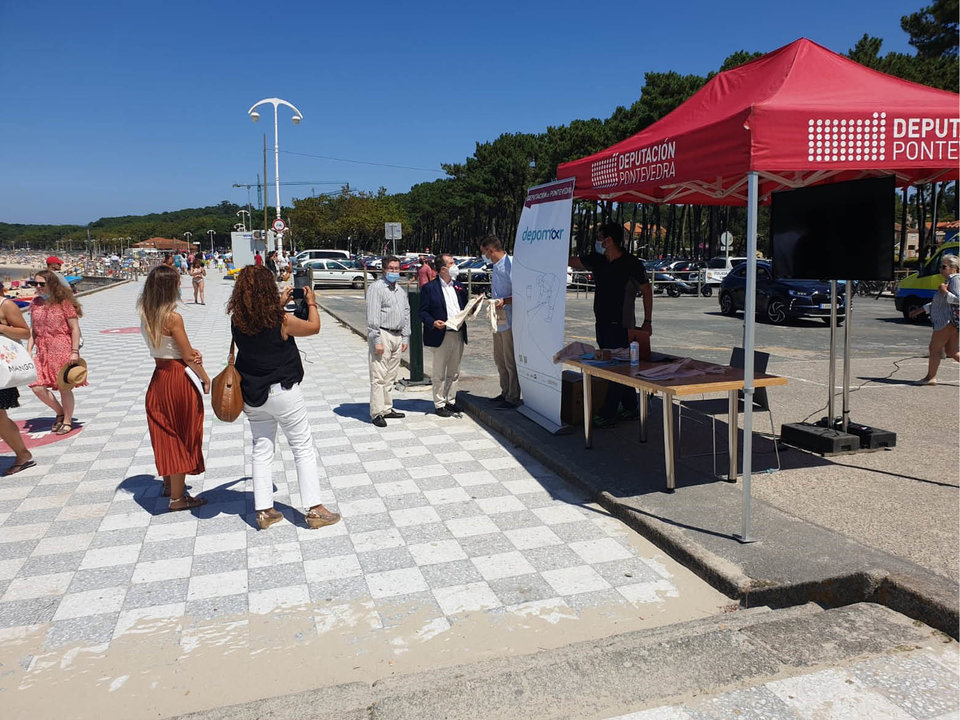 Samil fue la primera parada de la campaña informativa del proyecto DepoMar, una iniciativa que la Diputación para fomentar la protección y recuperación de la biodiversidad y los ecosistemas marinos en espacios de la Red Natura 2000 a través de la participación activa y directa de mariscadoras. El diputado Carlos López Font y Abel Caballero participaron en esta primera jornada de la campaña, desarrollada en la carpa informativa instalada en el paseo marítimo. El proyecto incluye un código de buenas prácticas, un audiovisual y una jornada técnica para poner en valor el trabajo femenino en el mar. El audiovisual de la campaña de DepoMar está protagonizado, tal y como remarcó Carmela Silva, por “mujeres empoderadas del mar, pioneras en ocupar espacios y con un firme compromiso para garantizar la sostenibilidad del mar”. El vídeo cuenta con la participación de Rita Míguez (presidenta de Asociación Nacional de Mujeres de la Pesca), María José Valles (patrona mayor de A Pastoriza, Vilanova), Esmeralda Otero (Mariscadoras de Redondela), Marina Buceta (Mar de Poio) y Nuria Novelle (de la asociación Amarturmar) y en él las mariscadoras explican su trabajo y reivindican su profesión.