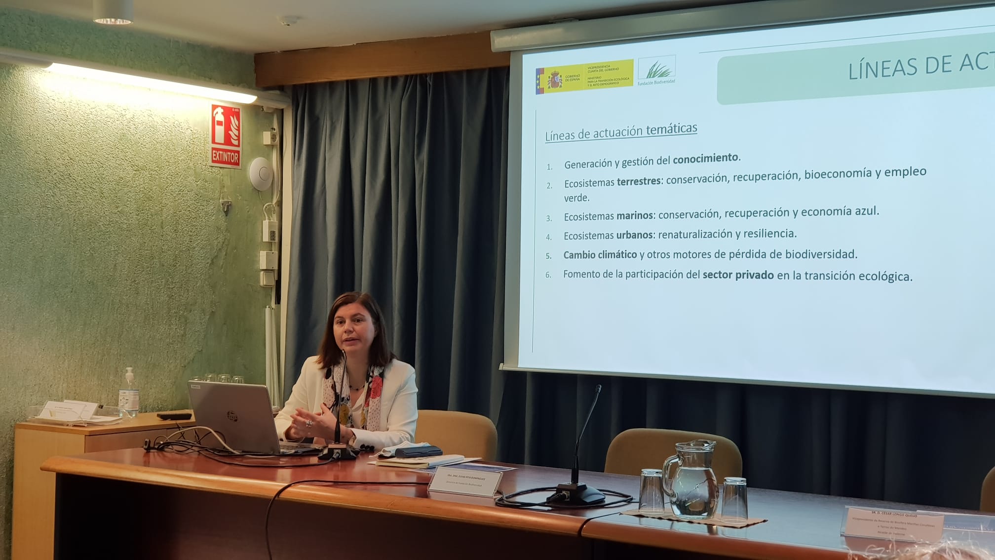 Elena Pita ha presentado los programas y líneas de trabajo de la Fundación Biodiversidad en el medio marino, destacando cómo, gracias a proyectos como el LIFE INTEMARES o el Programa Pleamar, desde la Fundación Biodiversidad contribuimos para alcanzar el 30 % de áreas marinas protegidas en 2030.
