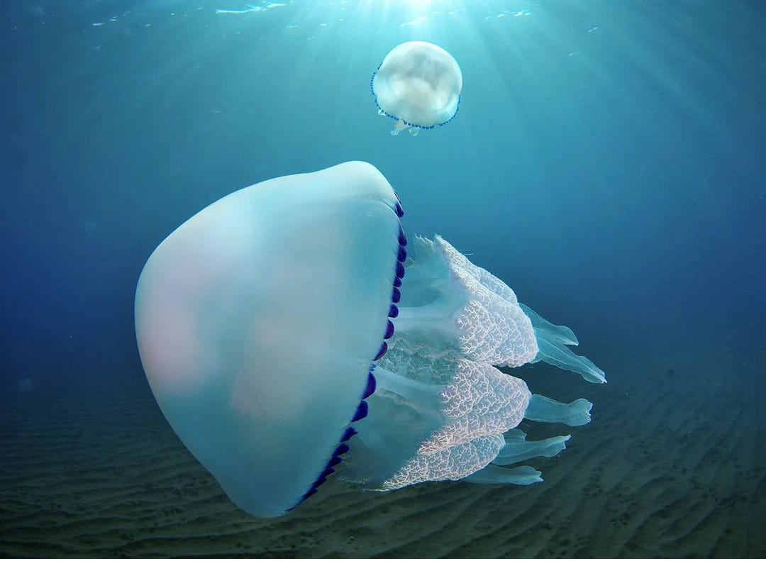 La medusa de barril (Rhizostoma pulmo) y la ‘huevo frito’ (Cotylorhiza tuberculata) son especies muy abundantes en el Mediterráneo español, aparecen frecuentemente en las capturas accidentales de los pescadores artesanales, y son conocidas en la comunidad científica por su alto contenido en colágeno. Las altas temperaturas registradas en los últimos años en el Mediterráneo, junto con otros factores, han favorecido su aumento.