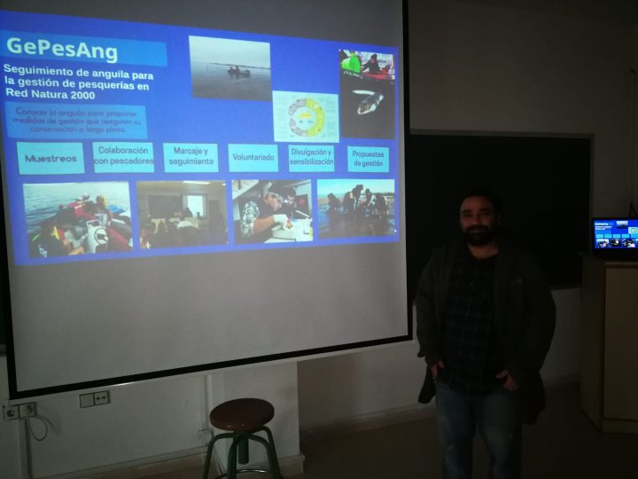 Esta mañana, una veintena de alumnos y alumnas de Bachillerato del IES La Vaguada, Cartagena, han participado en una charla sobre la anguila. Se han tratado aspectos como la biología de la anguila europea, el estado de sus poblaciones, las distintas amenazas que sufre la especie o datos sobre su pesquería en el Sureste Ibérico. También se mostraron algunas actuaciones que se están llevando a cabo en el proyecto GePesAng para mejorar la información disponible sobre la especie en la Región de Murcia y Alicante.