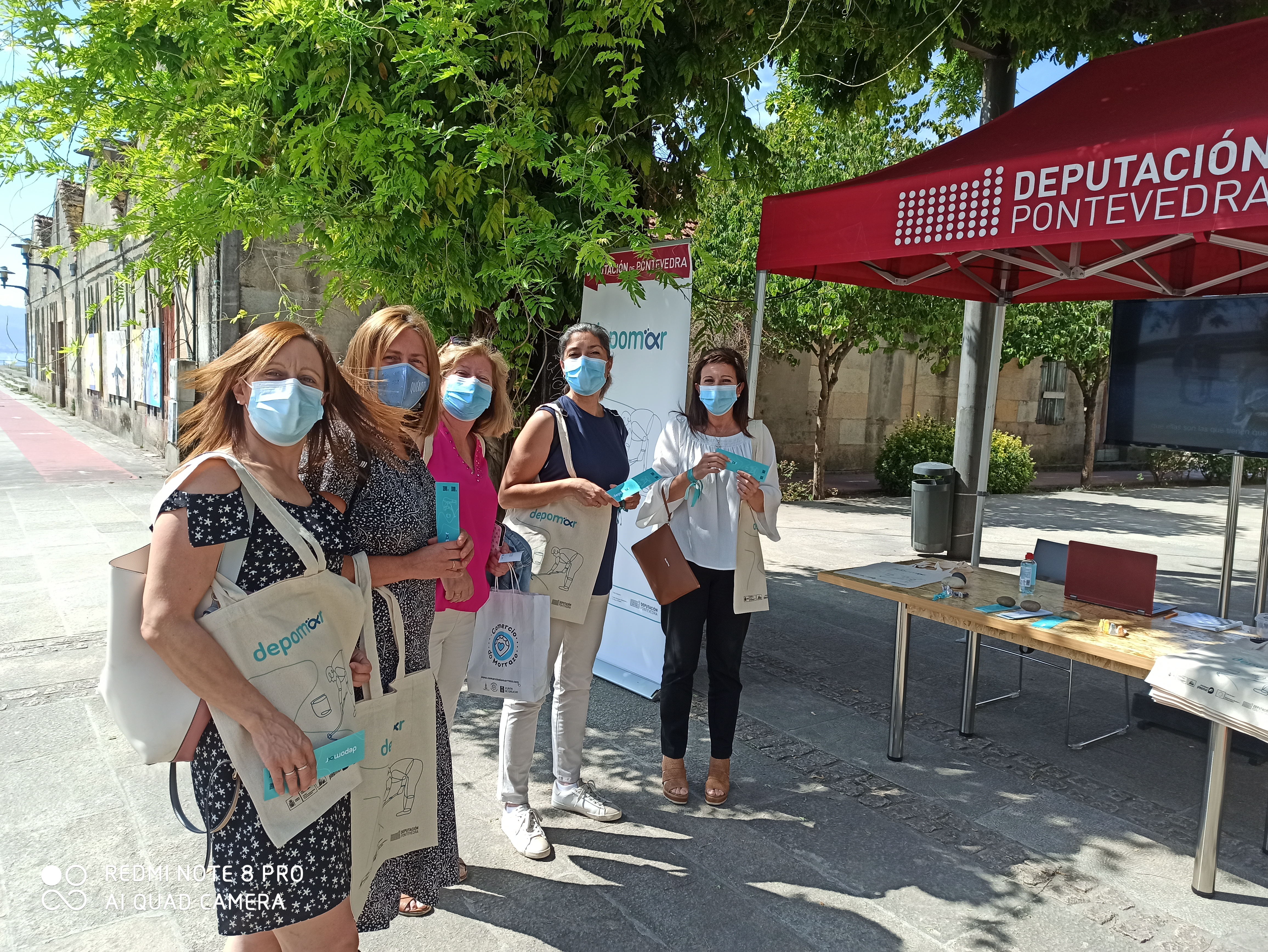 La parada de Depomar en Cangas tuvo lugar en la Praza das Pontes, con un puesto informativo en el que se distribuyó material divulgativo de la iniciativa. También fue el punto de encuentro entre la alcaldesa, Victoria Portas, y la diputada provincial, Noemí Outeda.