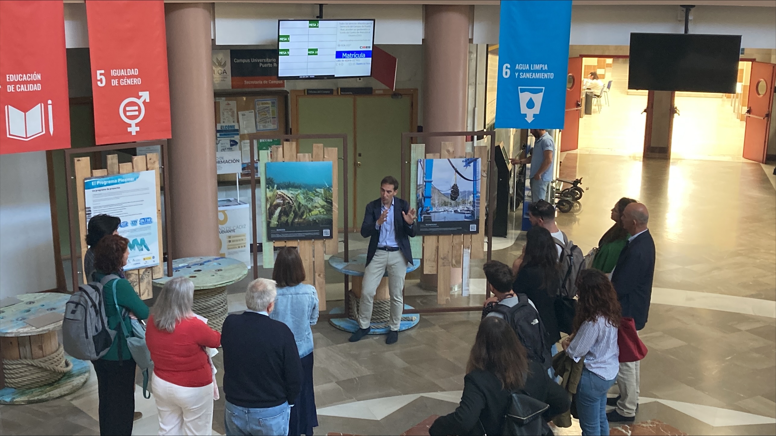 La Fundación Biodiversidad del Ministerio para la Transición Ecológica y el Reto Demográfico ha inaugurado en Cádiz la exposición Programa Pleamar: siete años de proyectos para impulsar la sostenibilidad de la pesca y acuicultura, que ya puede visitarse en hall del Centro Andaluz Superior de Estudios Marinos (CASEM) de la Universidad de Cádiz hasta el próximo 2 de mayo. A la inauguración han asistido Javier Benavente, decano de la Facultad de Ciencias del Mar y Ambientales de la Universidad de Cádiz, Susana Trasobares, directora general de Investigación de la Universidad de Cádiz, y Sonia Castañeda, subdirectora para la Transición Verde de la Fundación Biodiversidad.