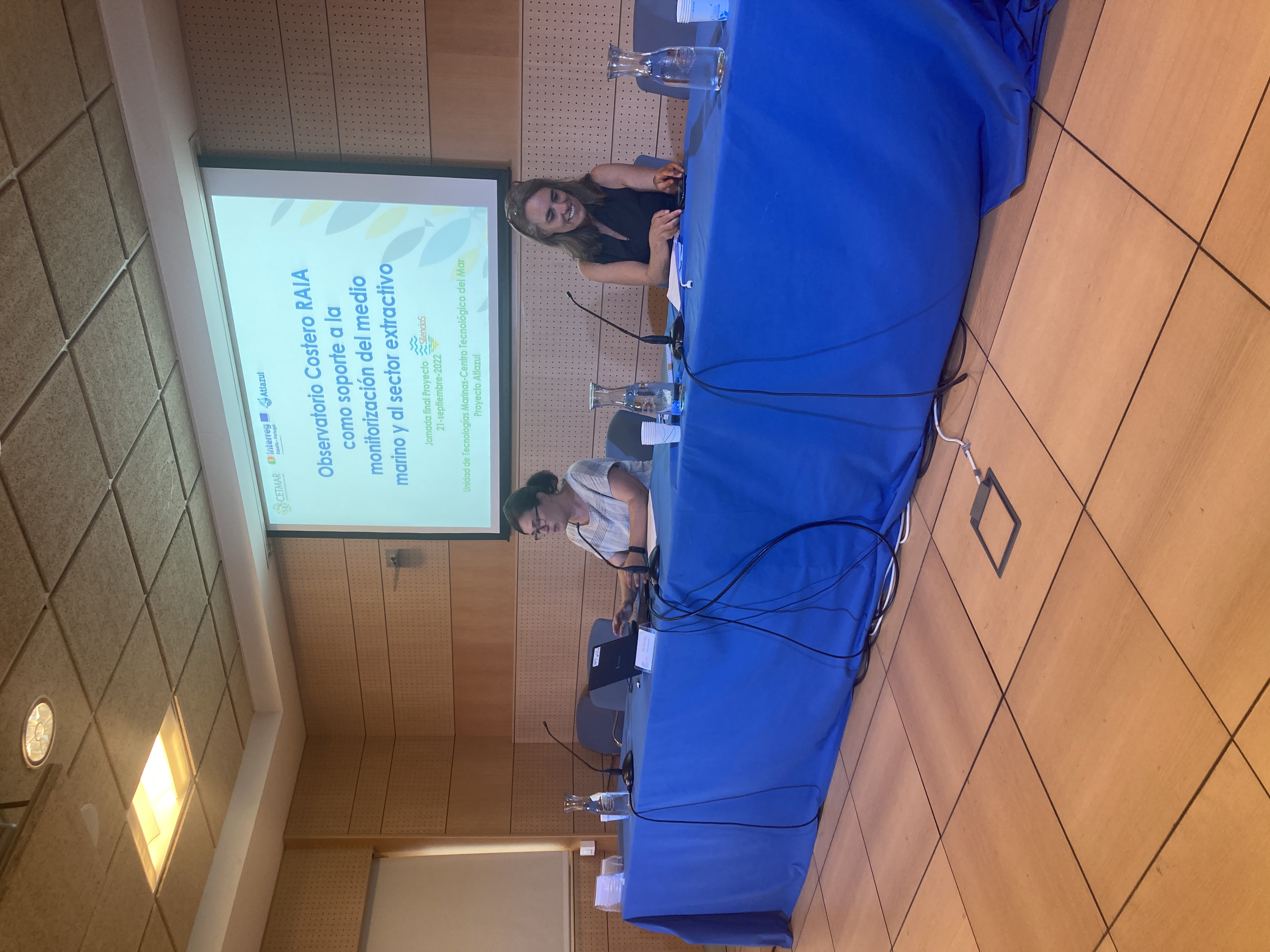 La primera parte de la jornada se compone de varias ponencias, empieza nuestra compañera Clara Almécija dónde a través de su ponencia nos introduce en el Observatorio Costero RAIA como soporte de la monitorización del medio marino y el sector extractivo.