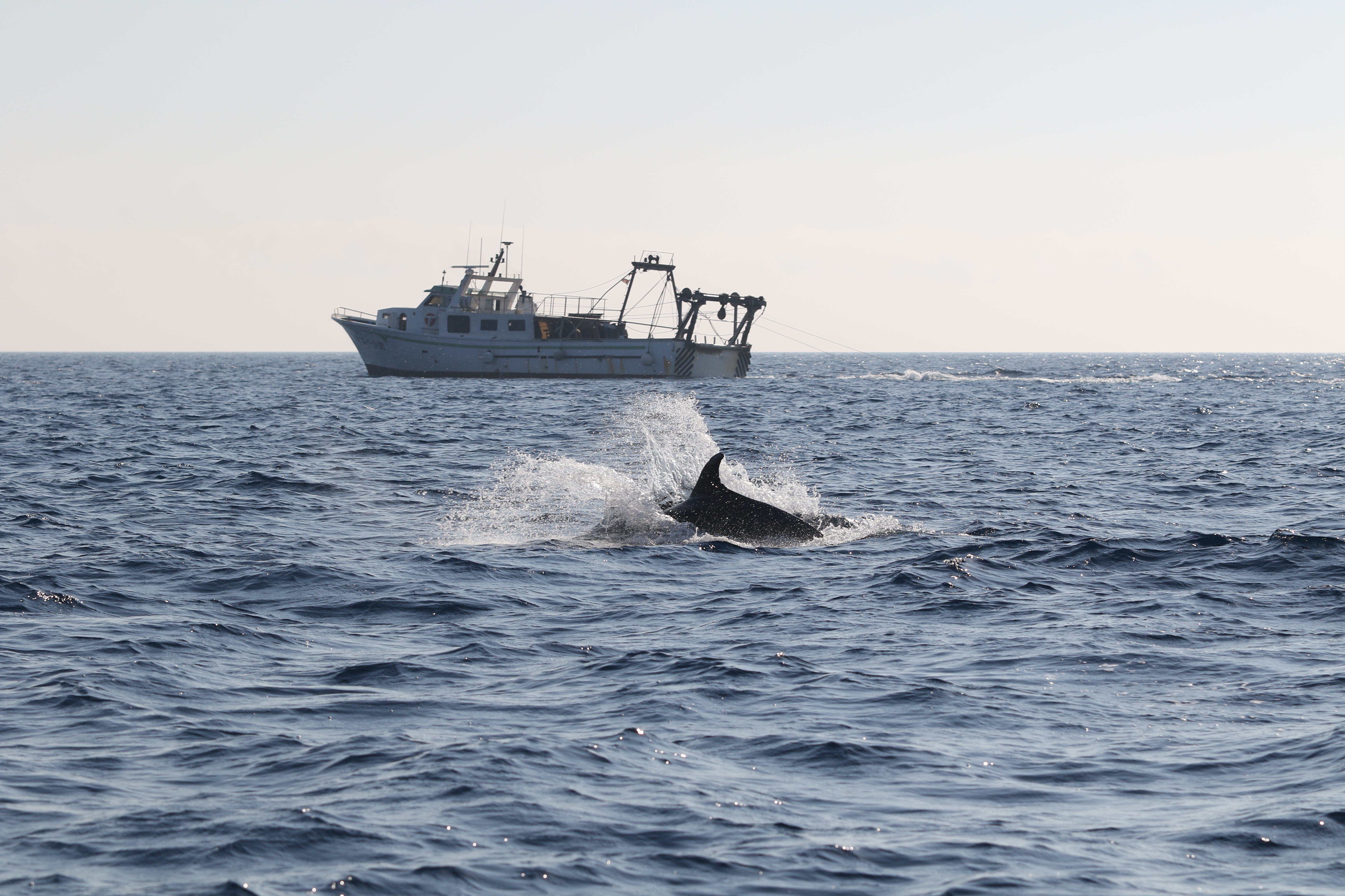 Además, se han obtenido en total 121 avisos de avistamientos de cetáceos realizados por pescadores, de los cuales más de 60 avistamientos eran delfines siguiendo las redes de arrastre. La especie más avistada por los pescadores fue el delfín mular (56% del total de avisos), y en el 78% de estos avistamientos los delfines estaban siguiendo su red, evidenciando y confirmando una elevada interacción