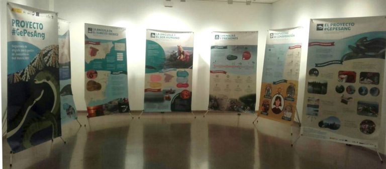 Esta mañana también se presentaba la exposición divulgativa sobre la anguila europea que se ha realzado en el marco del proyecto GePesAng. Esta exposición pretende dar a conocer alguno de los aspectos más relevantes de la biología de la especie, así como de la relación entre ella y el ser humano, a través de pesquerías o recetas tradicionales. Igualmente, presenta las amenazas que sufre, así como propuestas para su conservación.