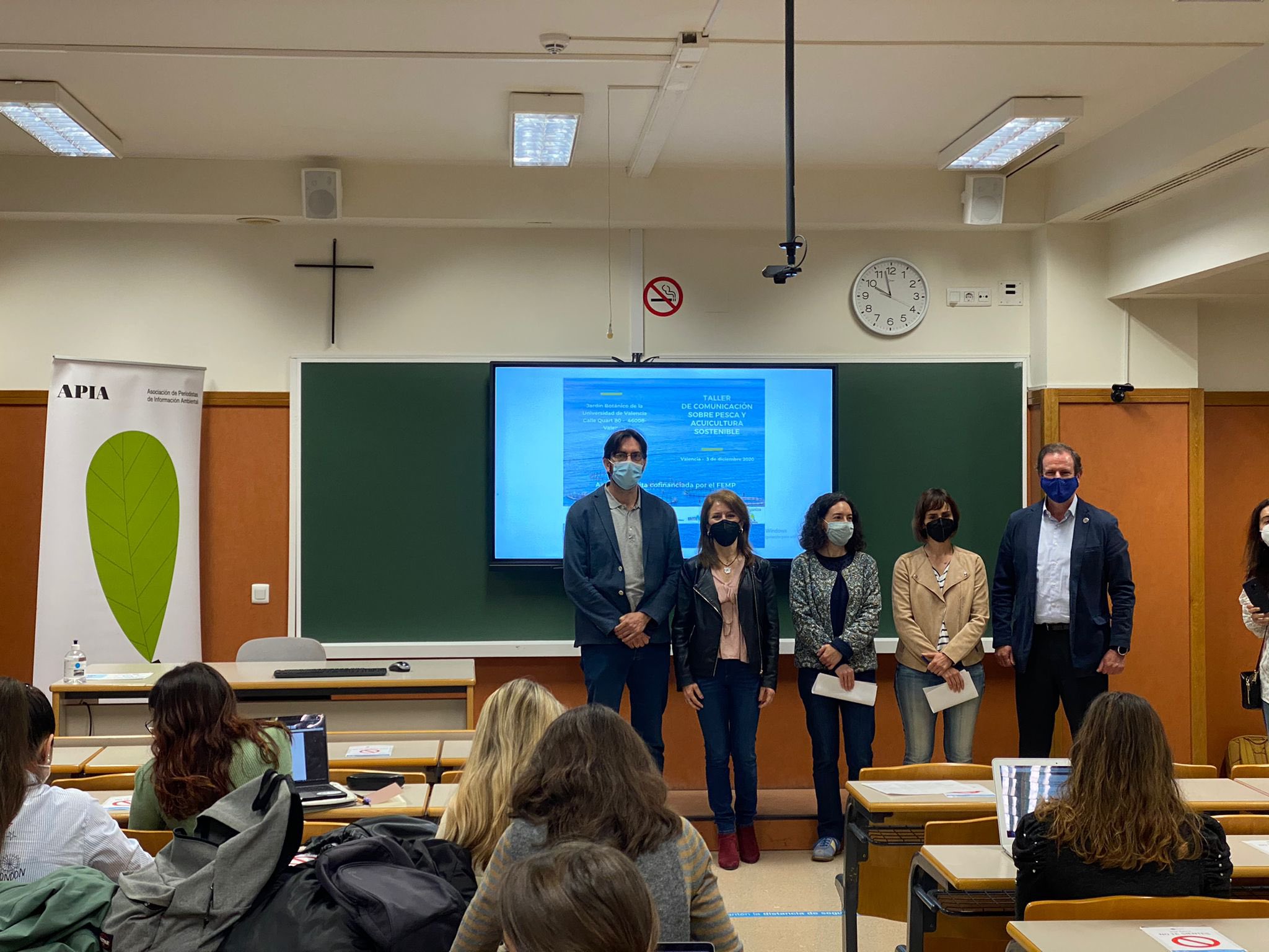 La Asociación de Periodistas de Información Ambiental (APIA) realizó el pasado 14 de abril de 2021, en la Facultad de Humanidades y Ciencias de la Comunicación, de la Universidad CEU Cardenal Herrera (CEU-UCH) de Valencia, un “Taller de comunicación sobre pesca y acuicultura sostenible” dirigido a periodistas y alumnos de periodismo, enmarcado dentro del Programa Pleamar, de la Fundación Biodiversidad, cofinanciado por el Fondo Europeo Marítimo y de Pesca (FEMP).