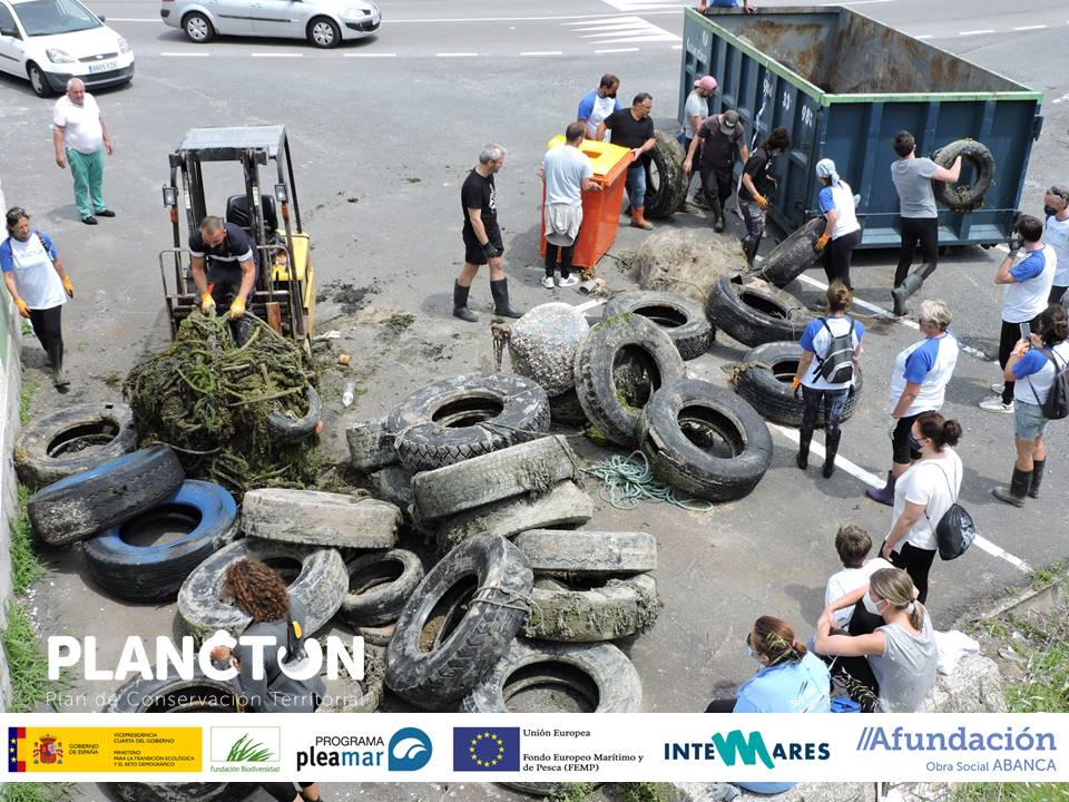 PLANCTON- Voluntarios de Afundación y de la Cofradía retiran tres toneladas de neumáticos de los fondos de A Illa de Arousa