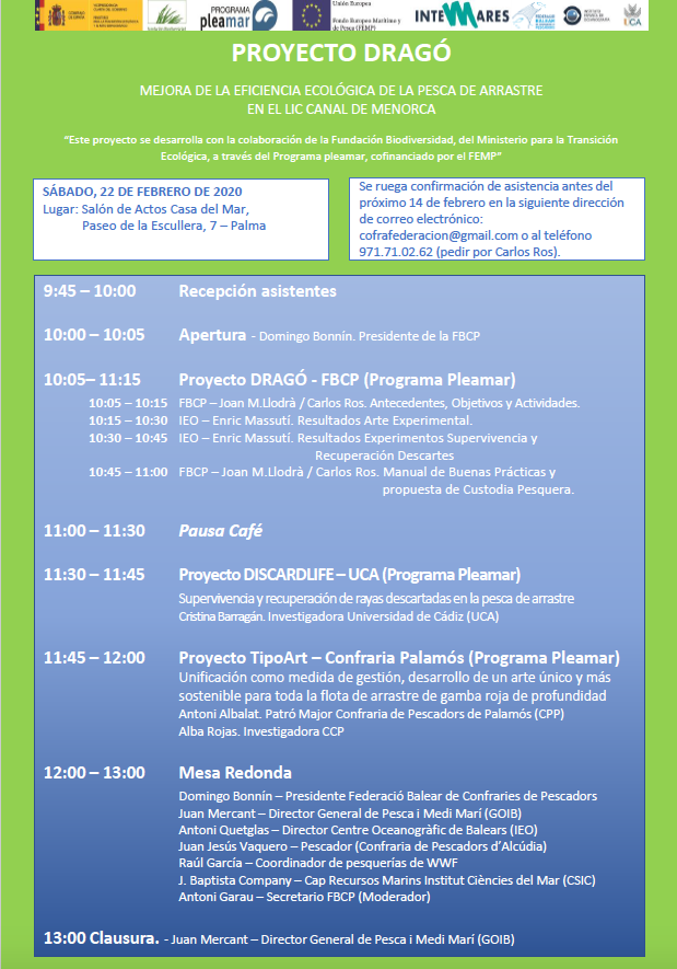 Este próximo sábado 22 de febrero se va a celebrar el segundo taller informativo del proyecto Mejora de la Eficiencia Ecológica de la Pesca de Arrastre en el LIC Canal de Menorca -...