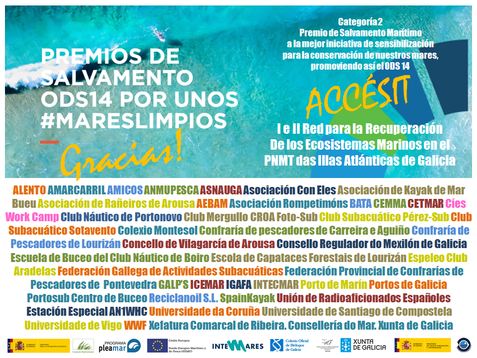 La I y II Red para la Recuperación de los Ecosistemas Marinos en el PNMT das Illas Atlánticas de Galicia premiadas con un Accésit dentro de los Premios de Salvamento Marítimo ODS14