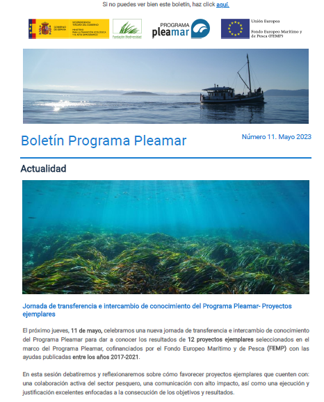 El Boletín electrónico del Programa pleamar es una publicación de periodicidad trimestral que recopila información de interés relativa a los proyectos del Programa y otra información de actualidad en materia de pesca y acuicultura sostenible.