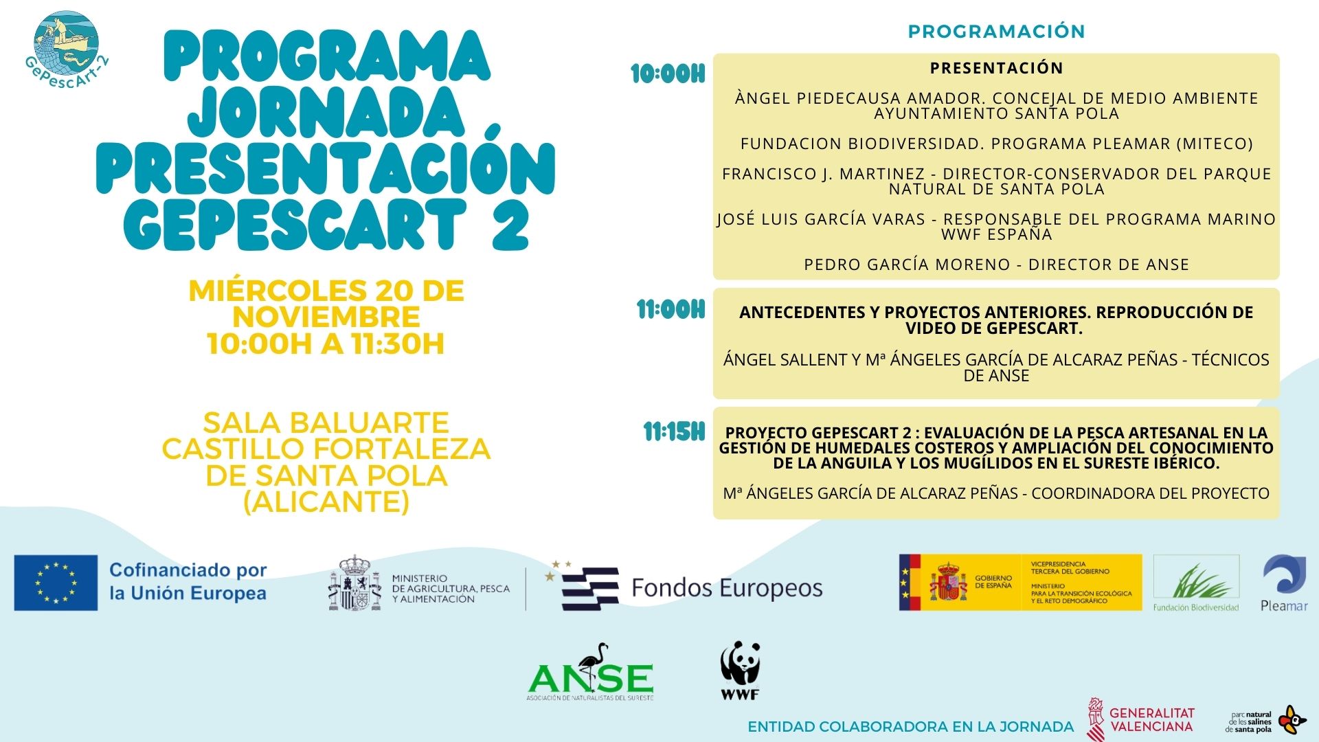 El próximo 20 de noviembre se celebra la jornada de presentación del proyecto GEPESCART2 en la Sala Baluarte del Castillo Fortaleza de Santa Pola.