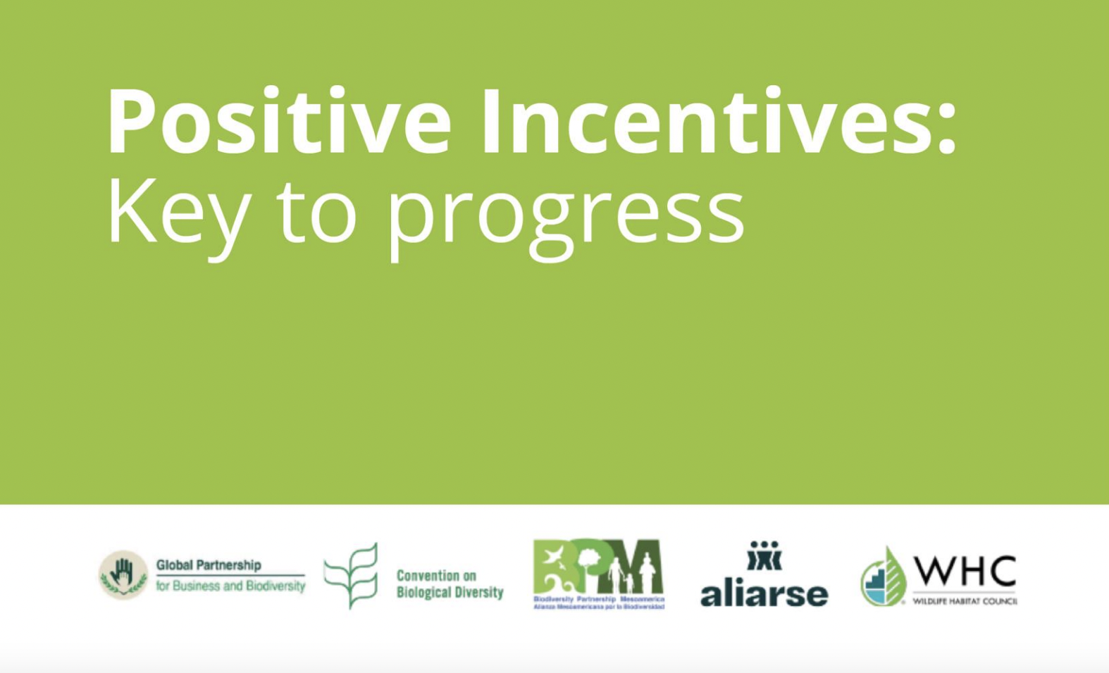 El documento Positive incentives: Key to progress, editado por Global Partnership Business and Biodiversidad (GPBP), Convenio sobre la Diversidad Biológica (CDB), Biodiversity...