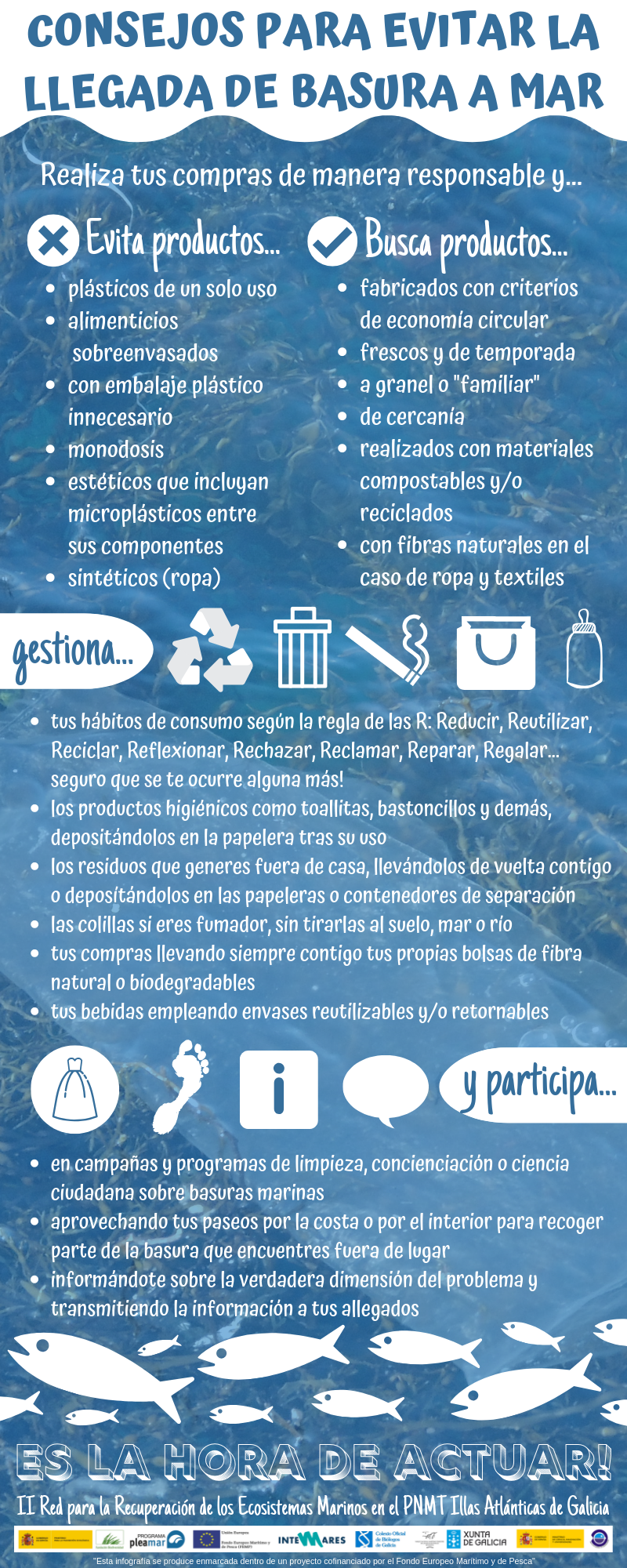 La grave problemática que suponen las basuras marinas en la actualidad es una realidad de la que tristemente el Parque Nacional no escapa, y es por esto, y con el objetivo primordial de minimizar y prevenir la pérdida de biodiversidad, por lo que en la anterior convocatoria se decidió actuar en uno de los enclaves del Parque Nacional, en concreto en el archipiélago de Sálvora, donde la Red para la recuperación de los ecosistemas marinos en el Parque Nacional Marítimo-Terrestre de las Islas Atlánticas de Galicia desarrolló una serie de actividades encaminadas a paliar este preocupante problema.